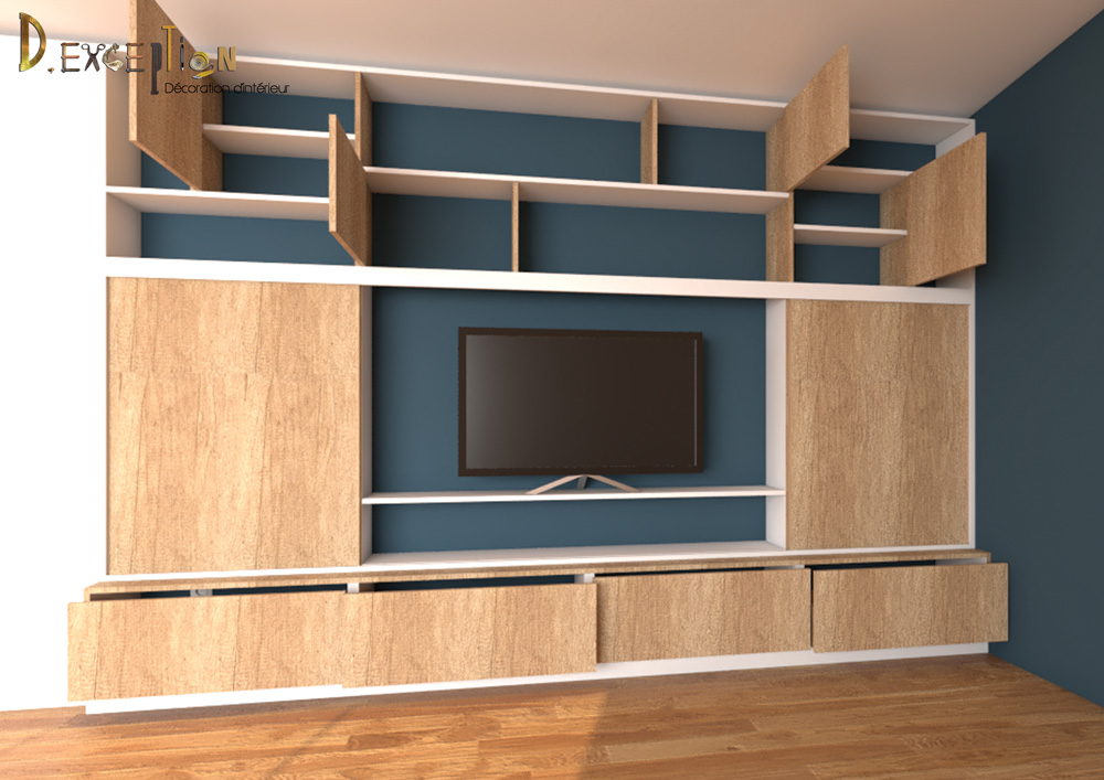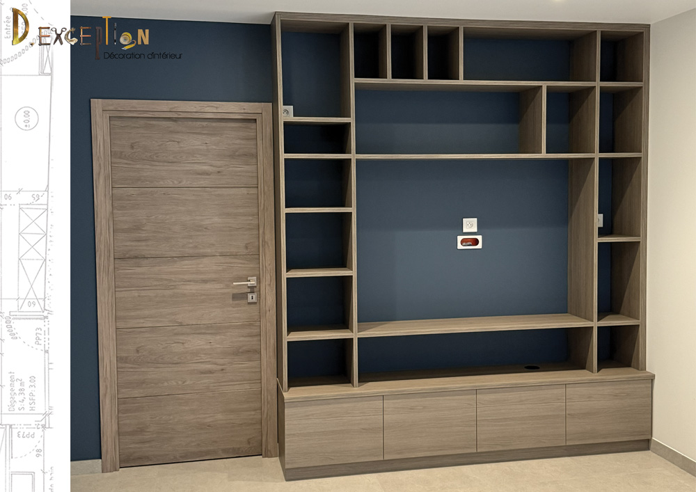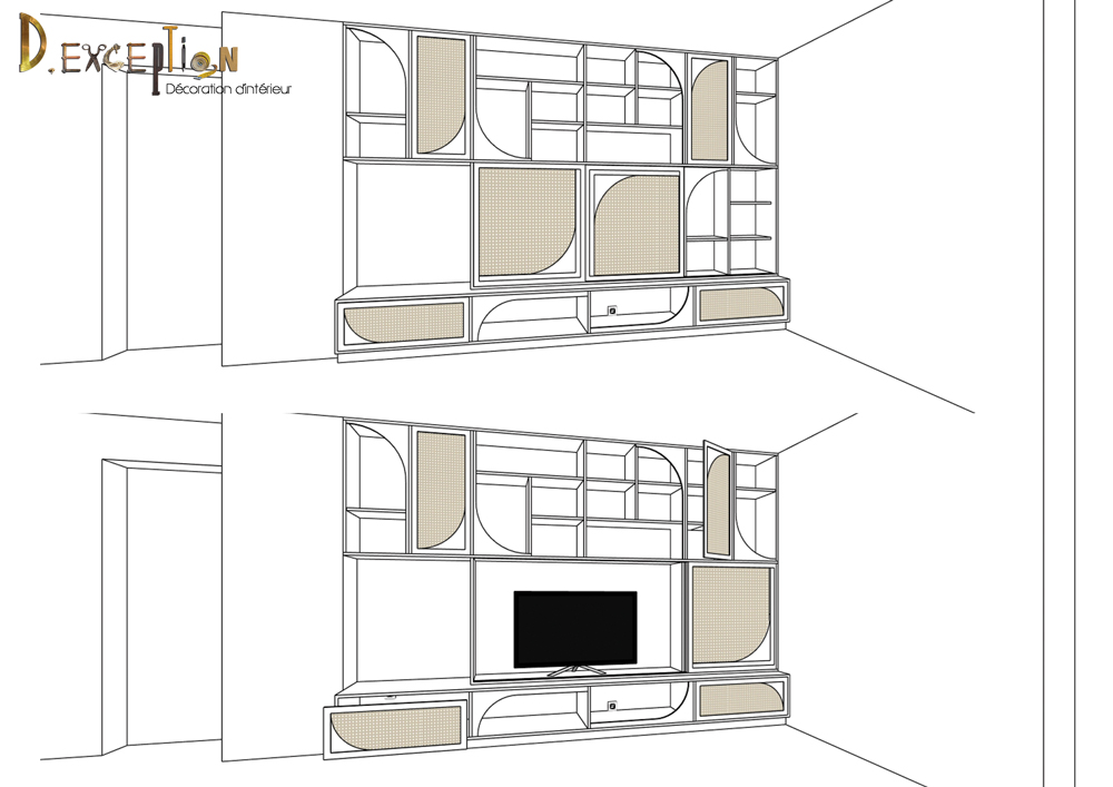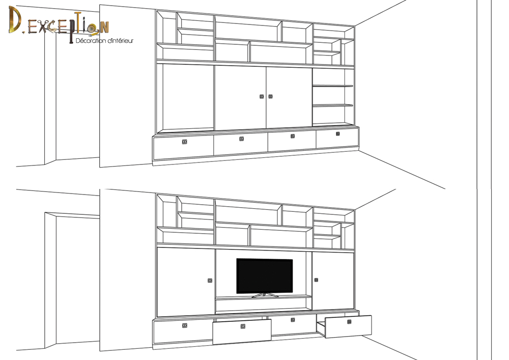 C’est souvent le cas pour les meubles tv , où vous imaginez intégrer la bibliothèque comme pour les deux projets présentés ici.
